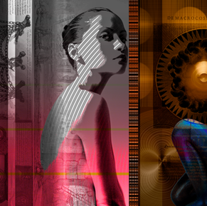 Each layered tableaux is created in an ongoing dance of transfiguration, often evolving over years. Elements are staged, juxtaposed - layered, painted, collaged, effaced, photographed, printed, then digitally layered again - until (hopefully) the work escapes it's origins, defying gravity, vibrating with frequencies in which the sacred absolves the profane, the antique copulates with the modern.